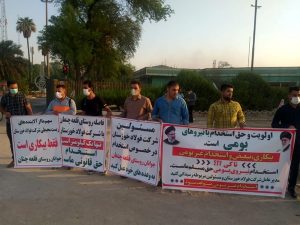 به گزارش خبرگزاری هرانا به نقل از ایلنا ، روز جمعه ۱۱ تیر ۱۴۰۰، شماری از جوانان جویای کار قله چنعان شهرستان کوت عبدالله، در اعتراض به استخدام نیرویهای غیر بومی در صنایع فولاد خوزستان علیرغم نیاز مبرم جوانان بومی منطقه به شغل و درآمد، در مقابل درب ورودی شرکت صنایع فولاد اهواز، تجمع اعتراضی برپا کردند.